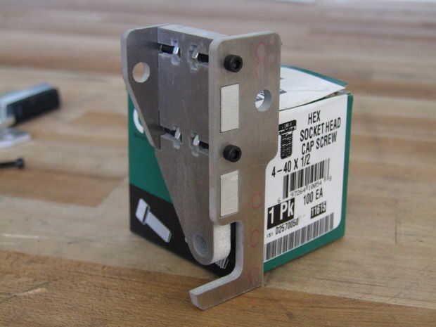 Placas de lado el lado del pedal de freno en la placa superior - estas solo encajara en una combinación. Deslice las tuercas 4-40 y apriete con tornillos 4-40. Eso es bastante.