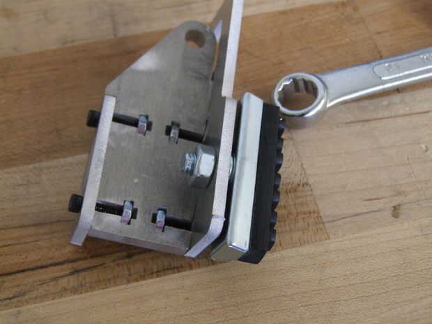Las zapatas deben han llegado en un vástago roscado M6 con tuerca y arandela. El tallo de la zapata de freno puede tener sección cónica o grasa un poco en él que impide que todo estar plana sobre la zapata de freno. Si este es el caso de la zapata, utilice un 1/4" o M6 arandela plana entre la zapata y la placa de montaje. Debe ser la superficie plana de contacto todo el camino.