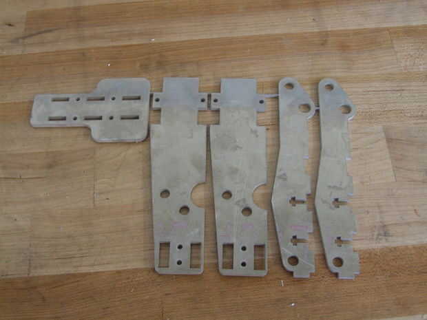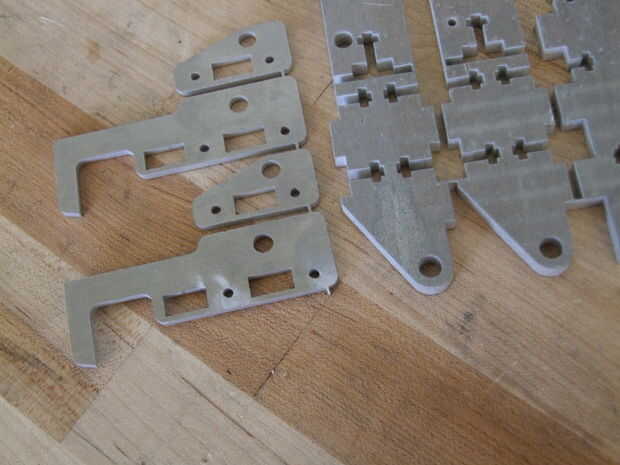 - Placas de montaje de zapata de freno y Cable de freno de montaje. Son las cuatro pequeñas piezas montadas desde el panel de 1/8", dos de los cuales parecen clase de J