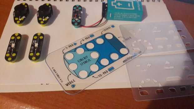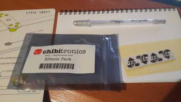 Después de recientemente conseguir un asimiento de algún Escribano de circuito, he estado preguntando cómo añadir más variedad al circuito sin la mayor parte de un microcontrolador. Afortunadamente tuvimos unas pegatinas de pack de efecto Chibitronics ahí. Chibitronics son pegatinas de circuito de peso ligero que se pueden conectar juntos en el papel medio conductor dicha cinta de cobre, el grafito o la tinta conductora.