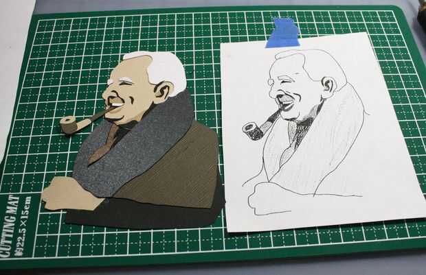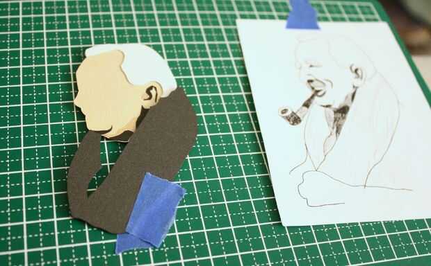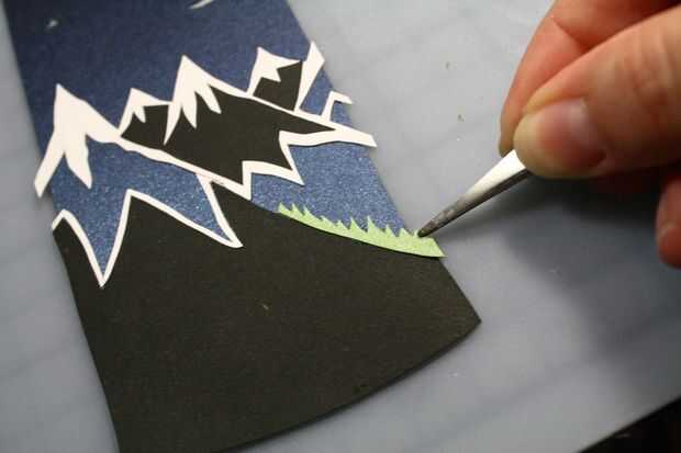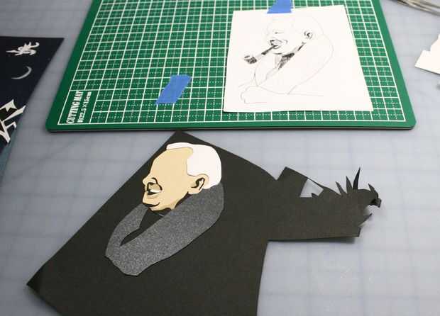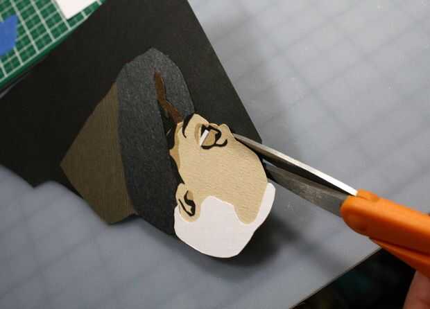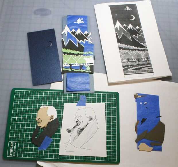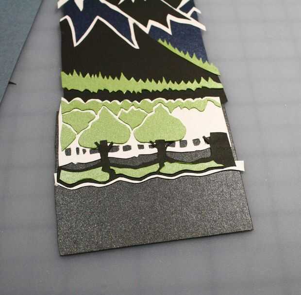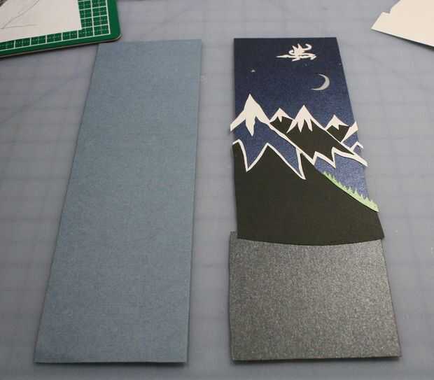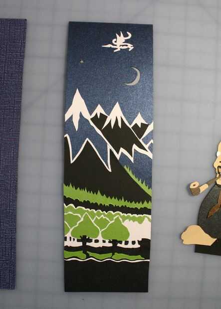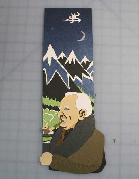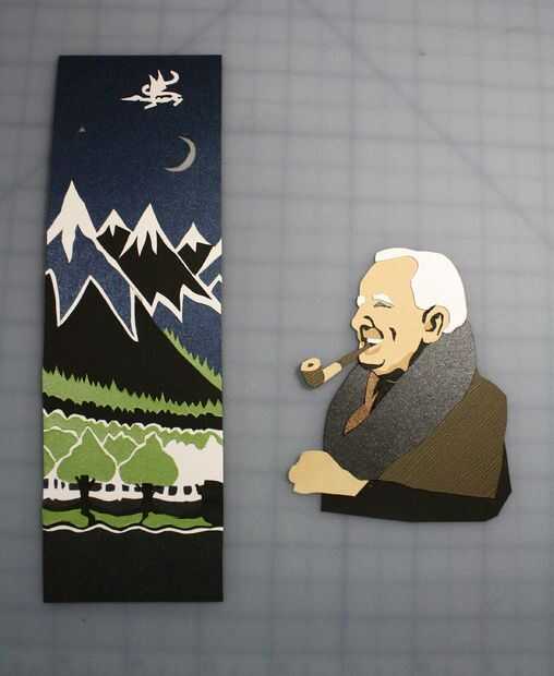 Usted puede quieren/necesitan para unir sus piezas cortadas a un papel de respaldo. Como se puede ver en las fotos, pongo a Tolkien en un pedazo de papel negro para que pudiera montarlo separado del fondo, entonces yo cortar el papel negro para que no fuera visible desde la parte delantera. También agregó una pieza de fondo para la parte inferior del marcador y corte que se cernían sobre piezas para adaptarse a la forma rectangular. Si desea hacer las cosas más fácil para usted mismo, a diferencia de mí, puede hacer una segunda hoja del forro que pegar todas las piezas delanteras. Esto va a vivir justo encima de su circuito.