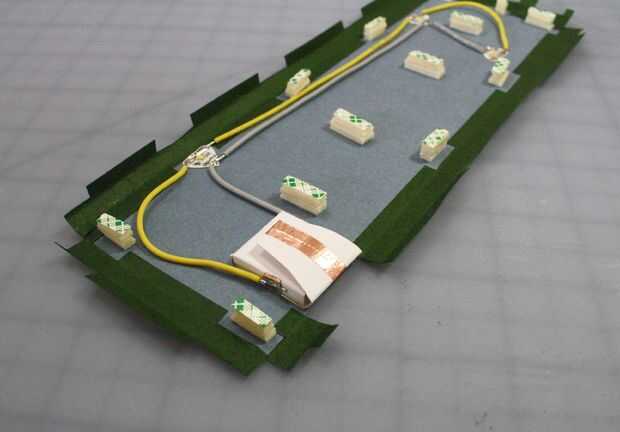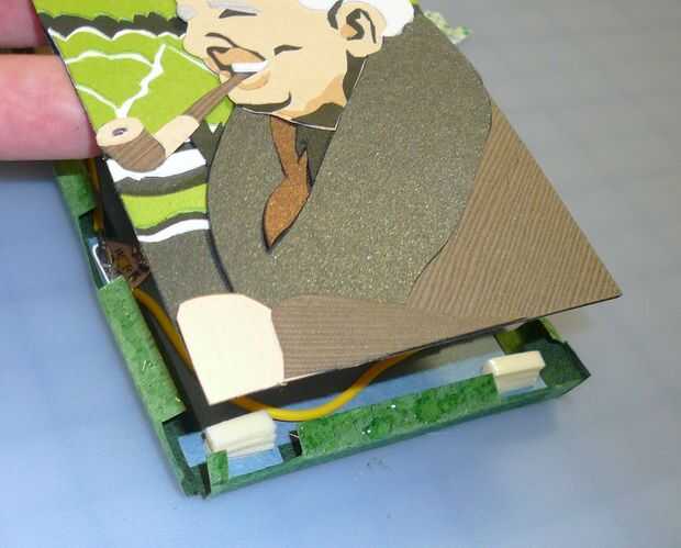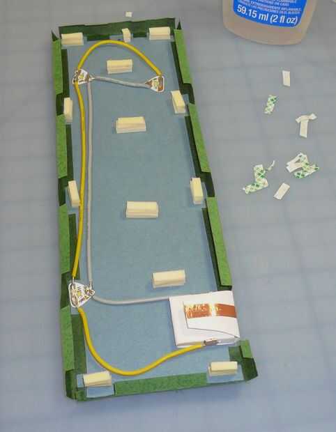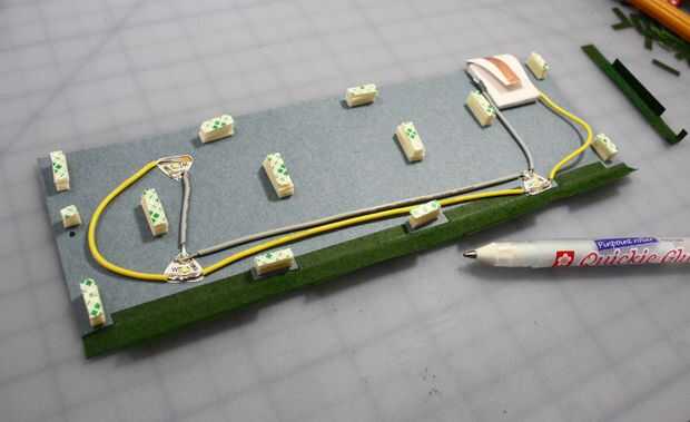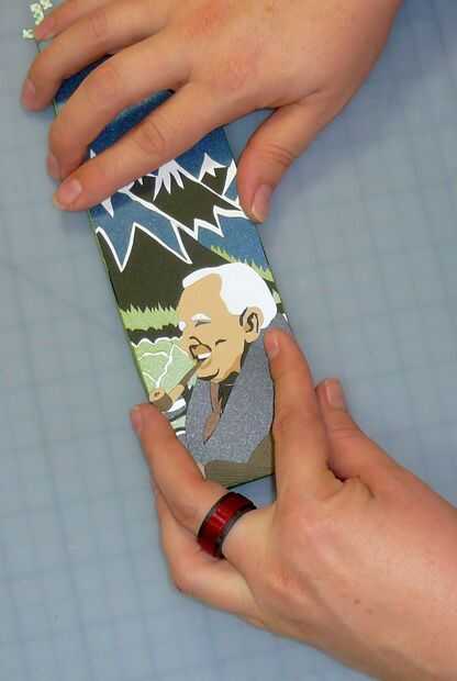 Es más fácil pegar primero todas las tiras en la parte posterior del marcador. Presione hacia abajo firmemente y asegúrese de que se peguen bien. Después de que las tiras se unen firmemente a la espalda, doblar todos los lados y las aletas por lo que son todo en la parte superior de los separadores de la cinta de montaje. Retire el protector de los espaciadores, Aplique pegamento en las lengüetas y presione con cuidado el frente del marcador en la parte superior (en ese orden). Me parece que, aunque estas pueden ser pequeñas lengüetas, el pegamento seco Zip más goopy es más confiable para tomar la mano de ambas partes. El pegamento de Quickie debe presionarse firmemente por ambos lados, que no es tanto una opción aquí.
