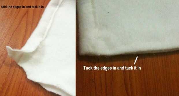 Ahora remeter los bordes en ambas esquinas y coser el borde medio y pulgadas en los 3 lados restantes.