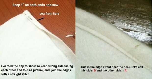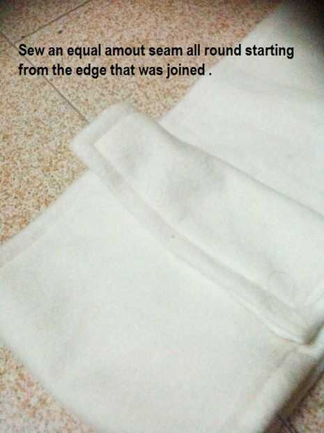 quería el borde para mostrar detrás de la nuca cuando Envuelva el calentador... así que doblé revés uno frente al otro... con una vez lateral es más larga que la otra por lo que se podía plegar y coser. Coser manteniendo una anchura de 1/2" del borde y dejando 1" en cualquier lado no cosido (que hace más fácil meter más tarde.. .else tienes que descoser!)