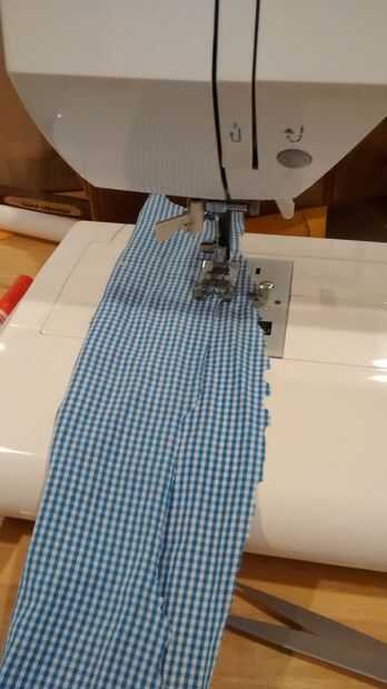 Doble en la mitad del camino largo (lado bueno al lado bueno) y coser el borde.