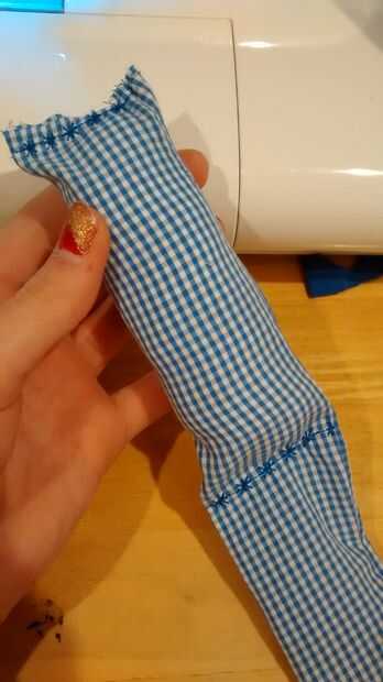 Cuando haya terminado, coser el extremo cerrado y corte el sobrante.