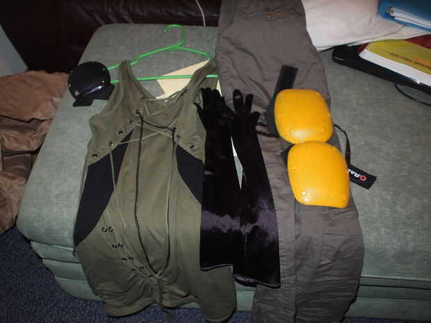 3 rodilleras – (para usar las rodillas y uno para una hombrera) $2 dólares compradas en tienda de segunda mano