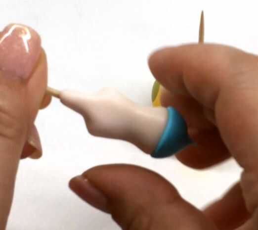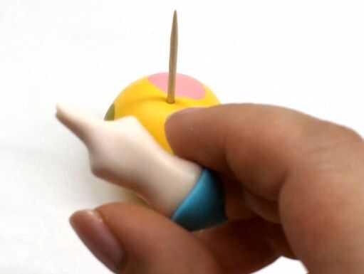 Yo uso otro palillo de dientes para hacer el cuerpo de la muñeca. Una vez que el cuerpo se forma, transferirlo al palillo de la bola.