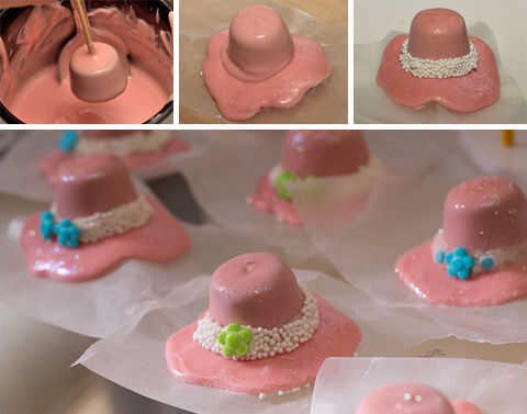 Derretir que el azúcar blanco se funde en un recipiente de microondas seguro. Utilice un palillo de dientes para aplicar una raya en el capó donde conectan las piezas de la cúpula y el borde. Espolvorear minúsculo blanco no-pareils sobre la capa antes de que endurezca.