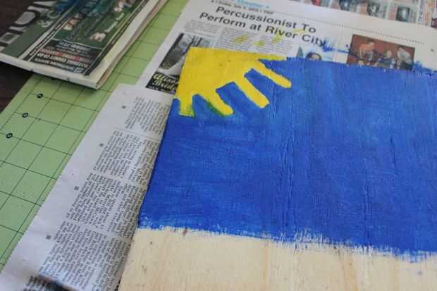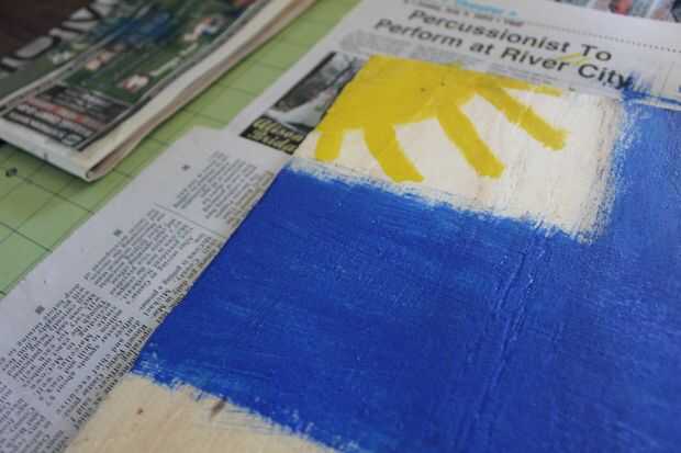 Pintar el diseño que tienes elegido para crear. Utilizamos amarillo a la pintura una gran terraza en la esquina izquierda.