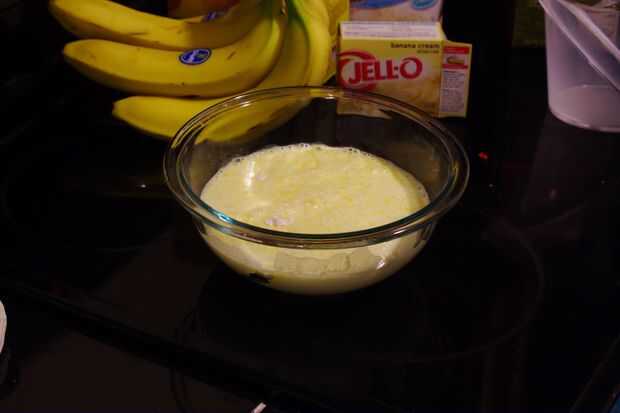 ahora voy a decirle cómo hacer pudín de plátano de mi familia.primero necesitas tus ingredientes:tazón grandemezclador eléctricodos cajas de pudín instantáneo [vinnilla francés]tres tazas de lecheun cartón pequeño de nataun pequeño cartón de Cool Whi