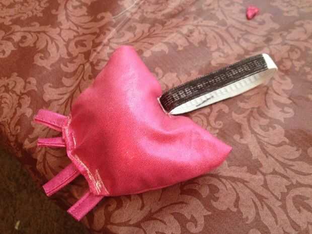Cortar una pieza que crees que será el tamaño adecuado... glándula... para su mascota. Entonces un poco a mano alzada se y coser como lo hice. (Sólo asegúrese de coser derecho lados juntos, para que pueda girar hacia fuera y tienen la costura en el interior.) No tenía ningún plan, acabo de hacer las cosas para arriba como un fui hahah. (Yo también relleno de algodón un poco de allí). Una vez que tengas eso hecho, tomar la costura de la tela, cortar las piezas de eso de los pezones, en cosa para mejor visibilidad. Añadir luego el elástico, asegúrese de que se ajusta en primer lugar.