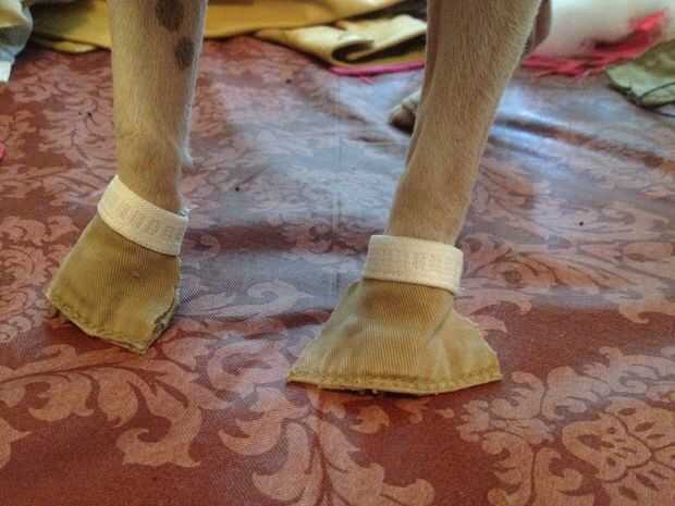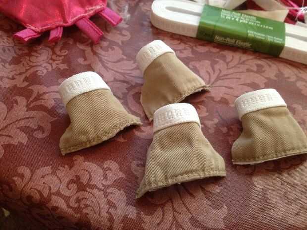 Corté las piezas de la banda de la cintura para envolver alrededor de su pie. Lo envolvió hasta que casi se reunió en los extremos. Luego corté un trozo de elástico que era un poco más largo, como se verá en las fotos... luego cosí que sobre el: enganche:, entonces cosieron los extremos del elástico. Es la cantidad perfecta de elasticidad para mantenerlos en pie, casi como pulseras. TAN perfecto. Si desea entrar en ella, podría tomar los acabado exterior y grafitear para uniformidad. Pero... Pensé que era fino jeje.