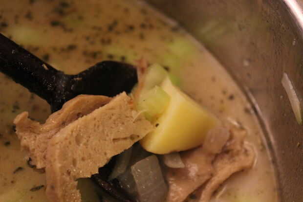 Chick'n y bolas de masa hervida (4 / 6 paso)