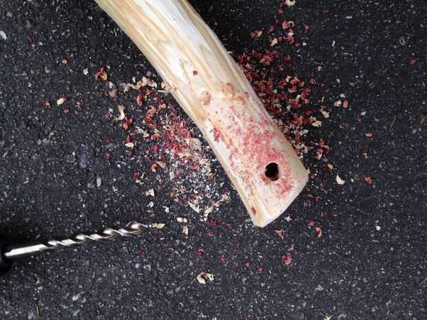 • Taladre los agujeros en cada extremo de la rama (coincide con el tamaño del hardware que tiene).