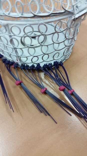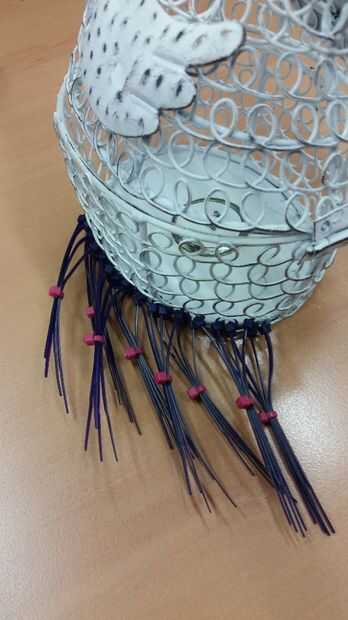 usé 4 lazos y ziped en la cesta, luego usé otro zip rosa para arreglarlos togetter por lo que pueden parecer como una pluma... prettty fácil pero lleva mucho tiempo, ver las fotos solo tienes que seguir la fila por fila... y alrededor y alrededor y alrededor ;)