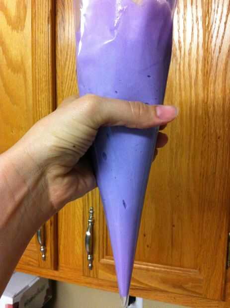 Vierta la mezcla de pastel en una bolsa de pastel decorado y corte un pequeño agujero en la punta.