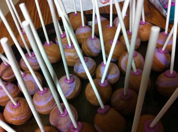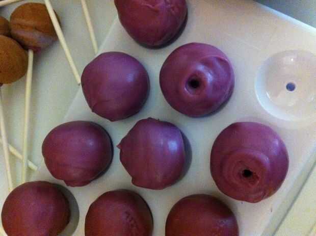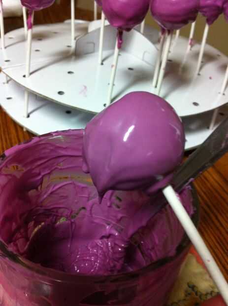 Luego sumergir tu stick pop de pastel en el chocolate y luego en el pop de la torta.