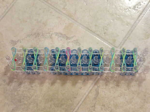 creo que esto es un braclet muy fácil para hacer. Espero que disfruten este INSTRUCTABLE. :)Paso 1: Colocación de los elásticos Primero escoger tres colores. Iniciar en la clavija central de su telar y salen a ambos lados en su telar. (Foto 1)Ahora v