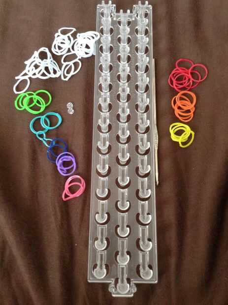 esto es una pulsera linda me encantaPaso 1: Suministros usted necesitará 1. telar de arco iris establece como se muestra en la foto2. ladrón bandas tantos colores como quieras3. el gancho de ganchillo o gancho de telar del arco iris4. un clip de c o