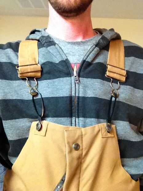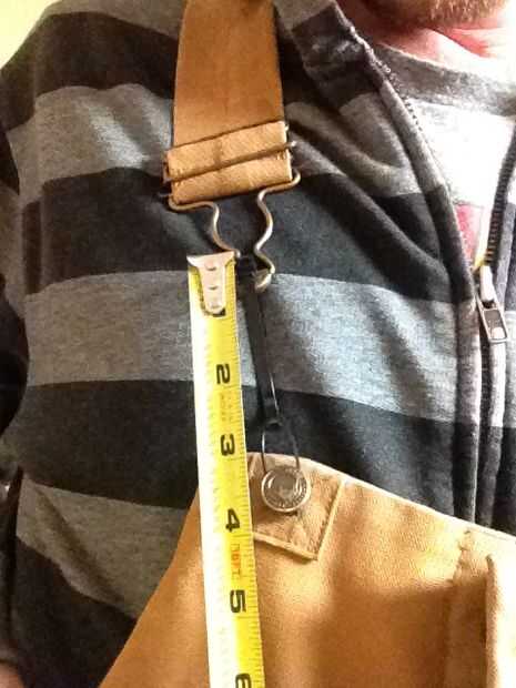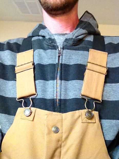 Estoy 6'6 '' y actualmente estoy en mi mayor, inclinar la balanza en 190 libras. Durante los últimos 15 años, he estado esta altura y para la mayoría de esos años tuve la suerte de opinar en 170 remojo húmedo. Ni que decir estoy en el lado delgado de la escala. Encontrar ropa que ajuste correctamente es casi imposible sin romper el Banco. Actualmente llevo una 34" de cintura y puedo encontrar 36" jeans en costura en línea, pero incluso a veces son demasiado cortos. Así, desde la secundaria he recurrido a usar mis pantalones mucho más bajos que mi cintura verdadera, al no tener que todos mis pantalones parecen piratas. Pero basta de ropa regular, este instructable es alguna ropa de trabajo. He tenido estos monos babero aislado para alrededor de 10 años. Son un tamaño medio alto. Primero, cuando llegué les llevaban todo el día en el trabajo, porque yo estaba haciendo un montón de cosas fuera de la tienda de motos. Al final del día, mis hombros estaban tan doloridos. Sentí como si hubiera llevado una mochila cargada con ladrillos todo el dia. Que desenlaza las correas de hombro y consiguió alivio inmediato. Sabía que las correas eran demasiado cortas, así que puse mi sombrero de pensar MacGyver y subió con una solución. ZIPTIES! Me coloca un ziptie a través de cada hebilla y había enganchado debajo del botón. Era mejor, pero todavía necesita un poco más y la correa se retorcía un poco debido a cómo fue el cordón a través de la hebilla. He añadido otro pequeño ziptie para añadir un poco de longitud y enderezar la correa. Utilicé como este para los próximos años, pero todavía no estaba bien. No necesitaba esto para los últimos dos años, pero tengo pensado hacer algunos corte este invierno, así que pensé haría este derecho y conseguir cierta flexibilidad de ajuste en las correas de madera.