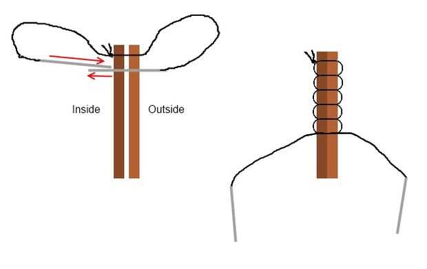 La costura puede hacerse a mano. Si usted elige que ruta, recomiendo una puntada de silla de montar de dos agujas, como el método de dos agujas tiende a ser un poco más rápido (al menos para mí). Medida suficiente hilo para cubrir 5 - 6 veces el ancho de la correa. Dos agujas, tirando del hilo para que ambos extremos tienen la misma longitud del hilo de rosca. Unir los dos extremos del hilo. Ahora debe tener un "bucle" de hilo con dos agujas en él. Tire las agujas, el nudo de posicionamiento en el medio. Insertar el elástico entre las capas de tela. Pinchar una aguja desde el interior hacia el exterior de la tela cerca del borde. Tire la aguja hasta el nudo contra el interior del panel de correa y la espalda. Con la misma aguja, hacer una 1/8"- 1/4" largo puntada sólo empujar la aguja a la mitad de la tela. Ahora, toma la otra aguja y empujarlo en la dirección opuesta a través del mismo orificio. Jale ambas agujas hasta que el hilo quede ajustado. Repita este proceso toda la longitud de la puntada. Un nudo después de la última puntada y tire de ambas agujas a través de la tela. Corte el hilo cerca de la tela para atrapar a los extremos del hilo en la tela. Repita para los restantes extremos de elástico que deba fijarse.