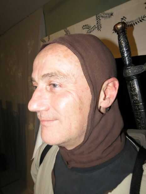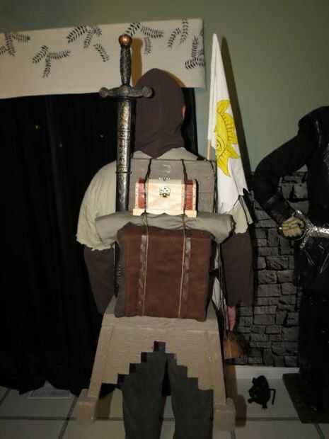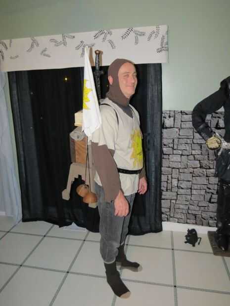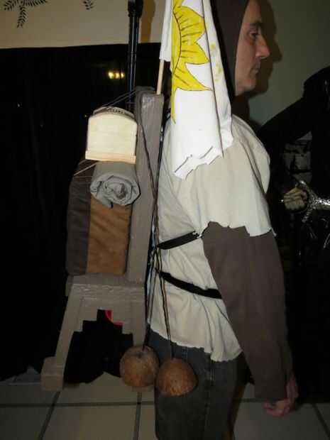 había decidido ir como el caballero negro de "Monty Python y el Santo Grial" este año, y mi esposa no podía pensar en un disfraz. Finalmente sugerí ven al partido como otro personaje de la película, y decidió que quería ir como King Arthur. Se t
