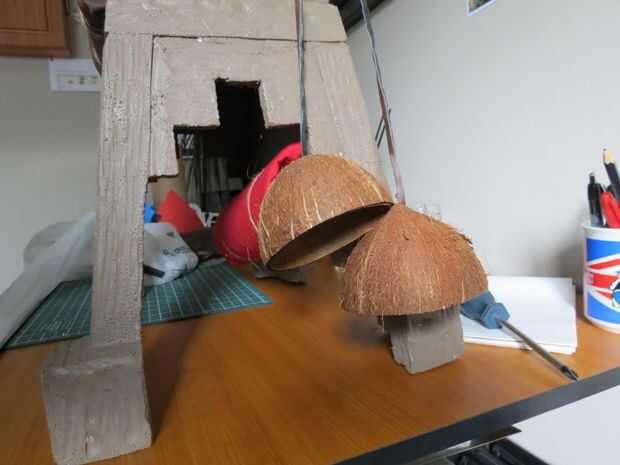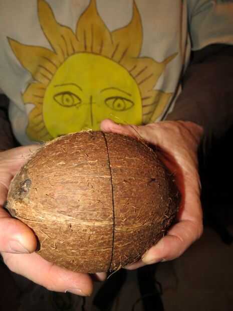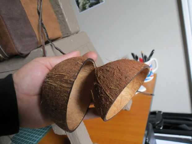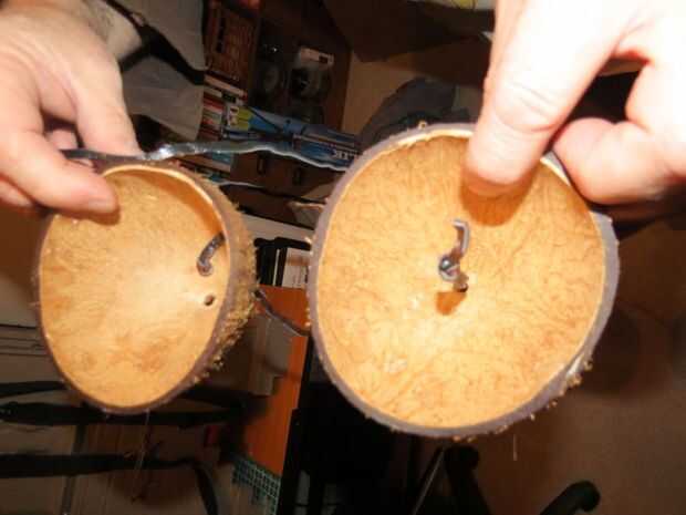 Ponga los tirantes de cuero o cadena de unos 3 pies de largo y anudar los extremos por lo que se pueden colgar los cocos en la mochila cuando te enfermas de llevar en la fiesta.