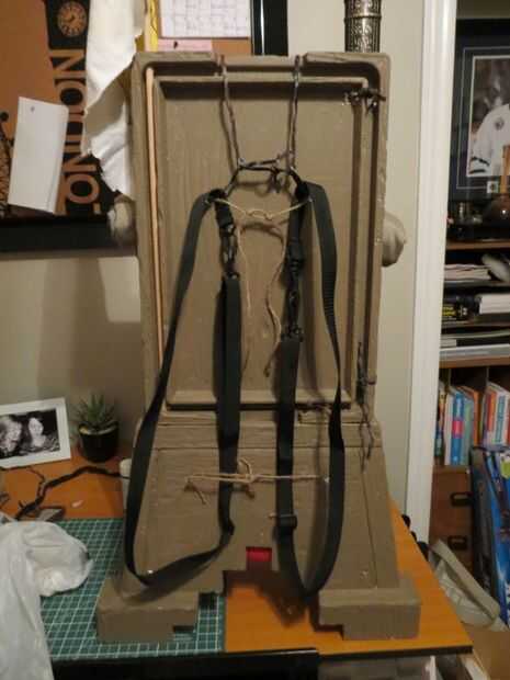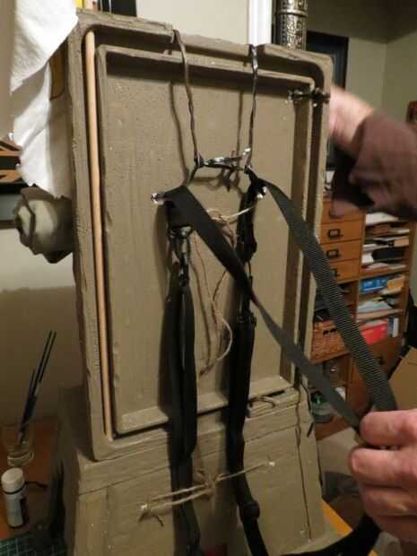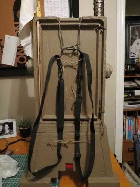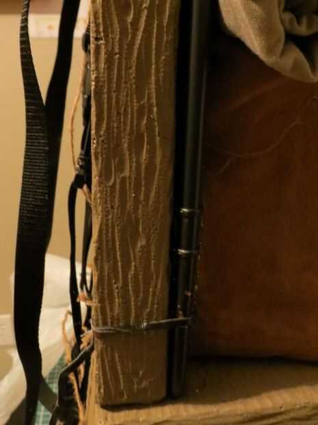 Para hacer las correas de la mochila, sólo usaba 2 tiras de bolsa de la cámara atadas con cordeles. Puede usar una mochila para niños atado o pegado así. Un buen conjunto de tiras de cuero grueso o correas de cuero sería bueno mirar demasiado.