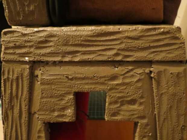 Utilice pintura de arte/látex o acrílico para cubrir la espuma de poliestireno un agradable color madera degradado de gris/marrón.