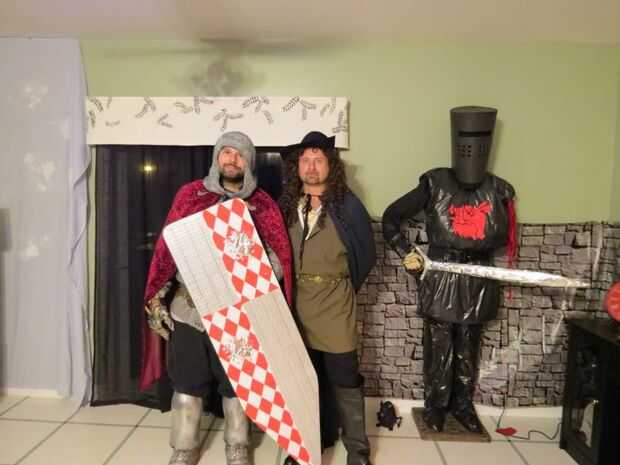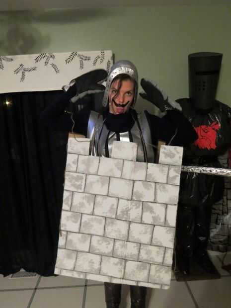 había decidido ir como el caballero negro de "Monty Python y el Santo Grial" este año, y mi esposa no podía pensar en un disfraz. Finalmente sugerí ven al partido como otro personaje de la película, y decidió que quería ir como King Arthur. Se t