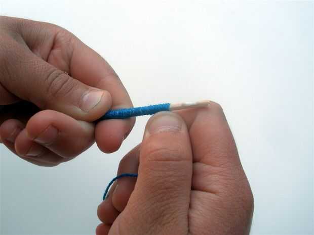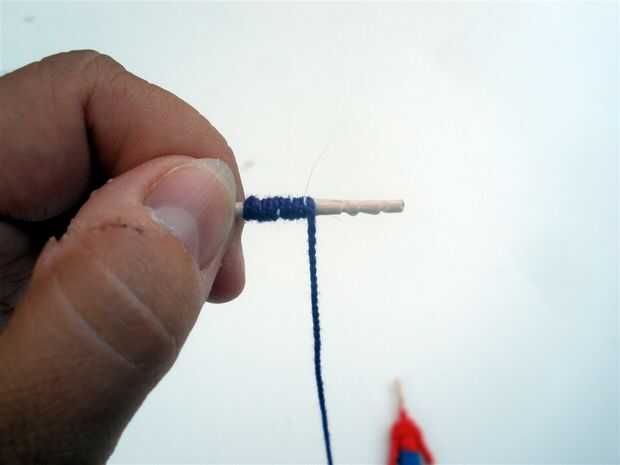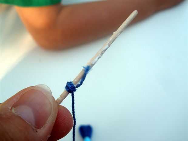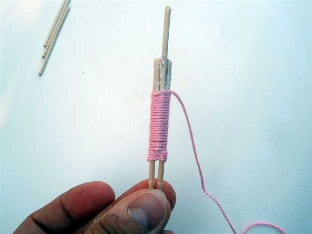 Para empezar, me colocaron el final para arriba a lo largo del palillo de dientes y comenzó a envolver el hilo a partir de la parte inferior.