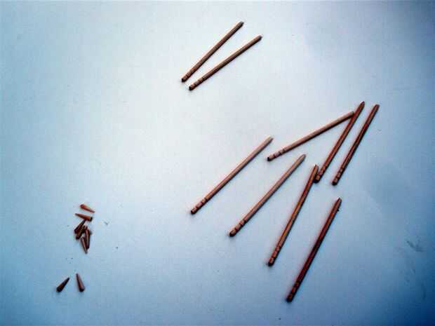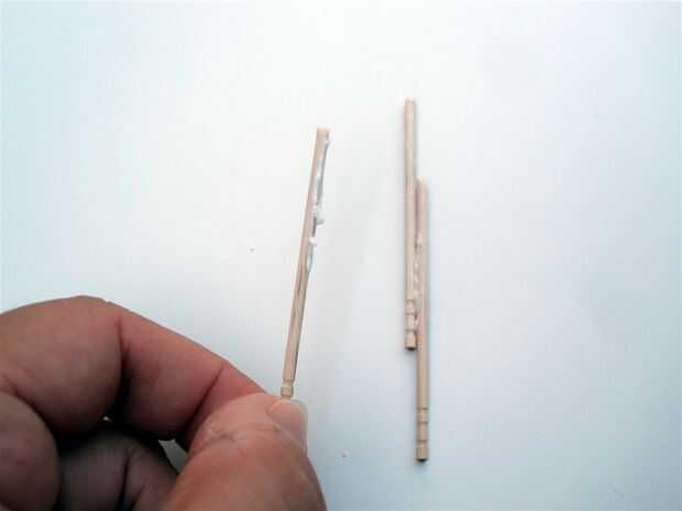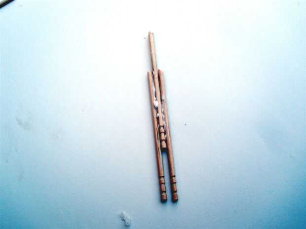 Corte dos de los palillos por la mitad para los brazos (un sistema para cada muñeca).