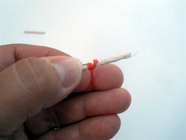 Se separó un poco de pegamento en el palillo de dientes su trabajo, especialmente a adherir el extremo del hilo.