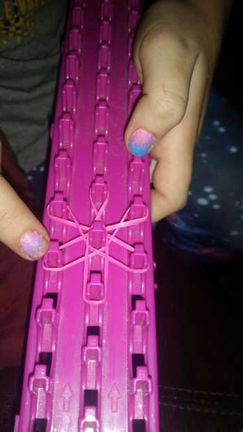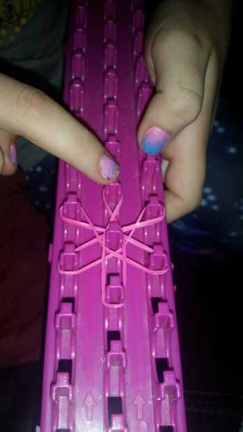 2. Comience con 6 bandas de caucho. Hacer un ciclo infinito pero estira 2.