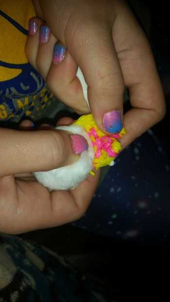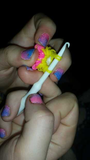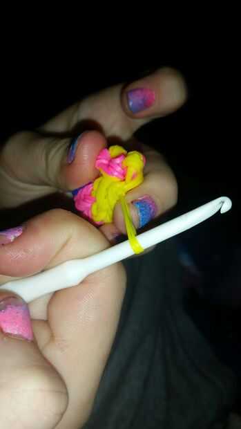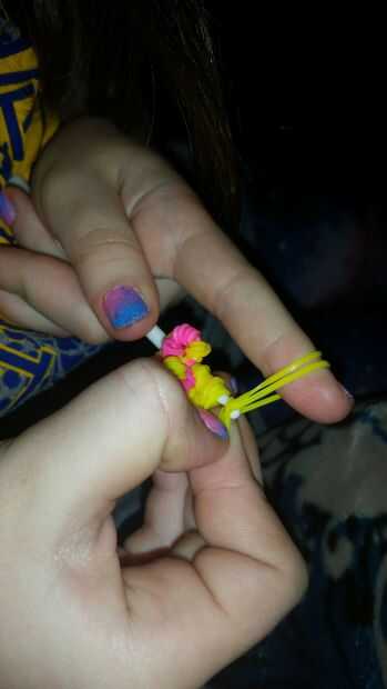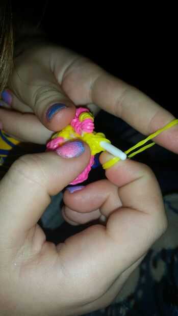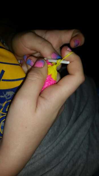 1. trabajar las bandas de goma sobre la otra hasta que salga el chico.
