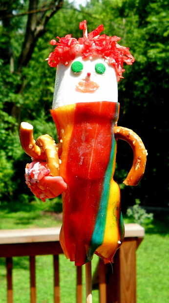 3. el coco tinte con unas gotas de colorante. Extender la parte superior de la melcocha 1 con escarcha. Introducirlo en el coco de color.