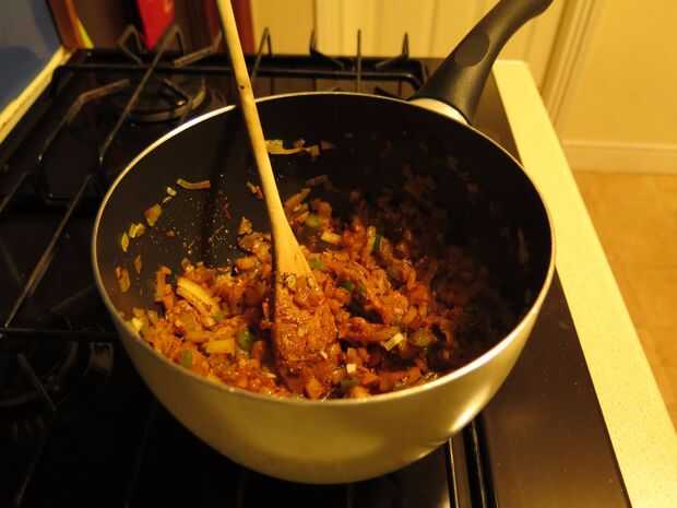 Cuadro 1. Las verduras deben ser en los colores encantadores de las hierbas y especias que han agregado, una vez han dorado un poco como bien es el momento de añadir la carne.