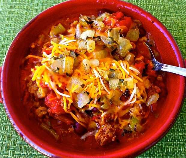 Mi Chile es abundante y delicioso y está hecho con una mezcla de carne molida, cebolla, ajo, pimiento, Chile en polvo, comino, orégano, albahaca, productos de tomate, frijoles y hojas de laurel.
