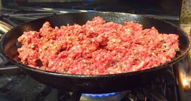 En una sartén mediana, freír la carne molida sobre med/baja temperatura.