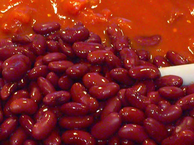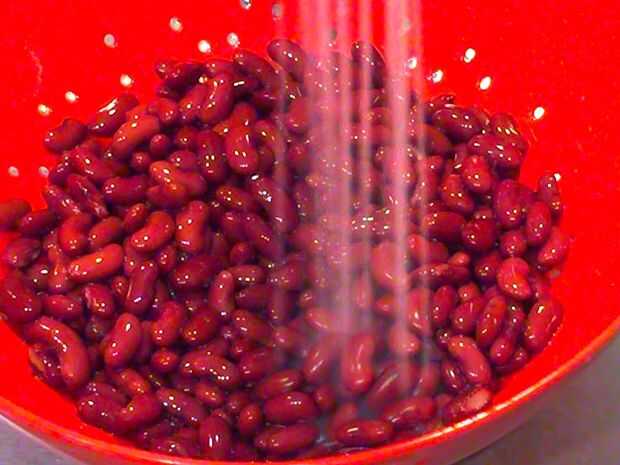 Escurra y enjuague los frijoles; Añadir a la mezcla de tomate.