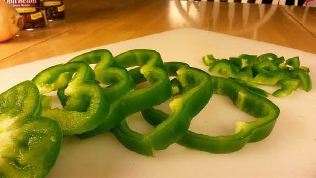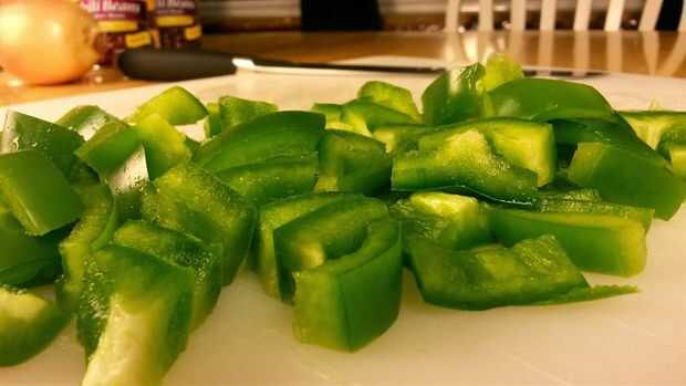 Llegar a whackin'hasta pimienta verde! Vamos para aquí en trozos tamaño bocado... Así, no demasiado pequeño y no demasiado grande!