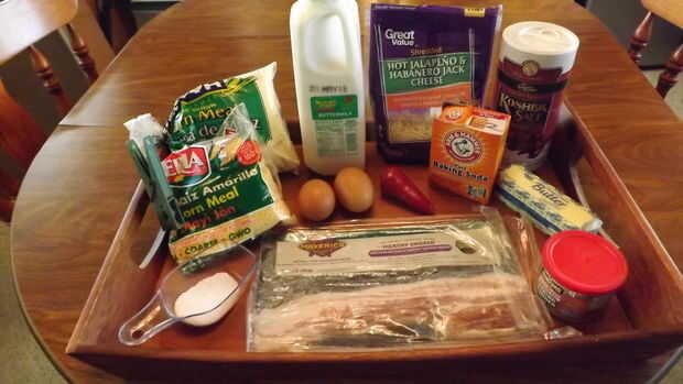 Chile rojo, Chile Jalapeño Jack Cheese & Bacon panecillos de harina de maíz (1 / 5 paso)