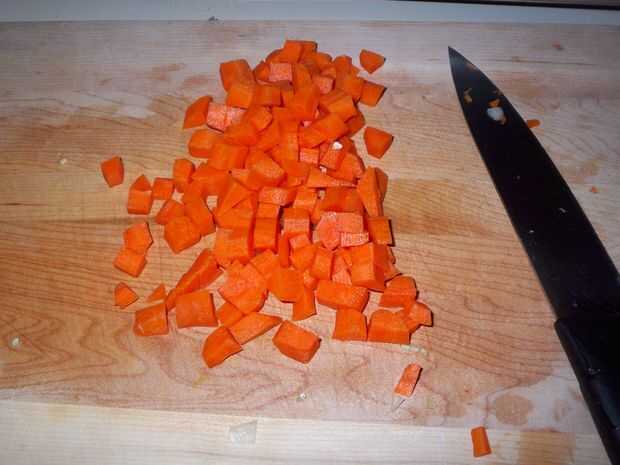 Cortar las zanahorias en cuadritos
