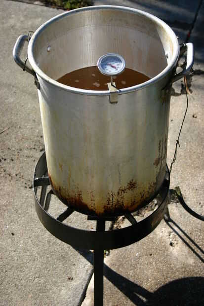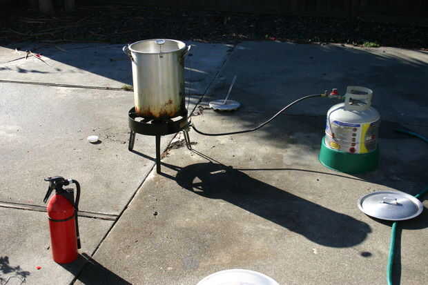 Puede modular la fuerza de su llama con la válvula de la manguera. Derecho, que desea bastante alto. No se añadir el pavo hasta que la temperatura del aceite se obtiene cerca de 400F.