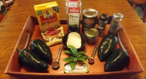 CHILES POBLANOS al horno rellenos con pasas y piñones (1 / 5 paso)
