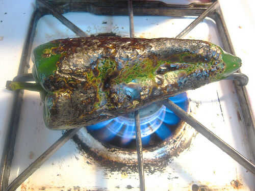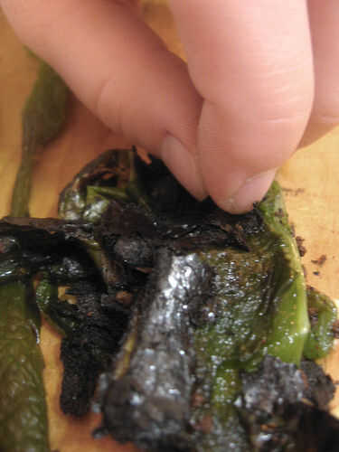 - 2 chiles poblanos grandes, asados