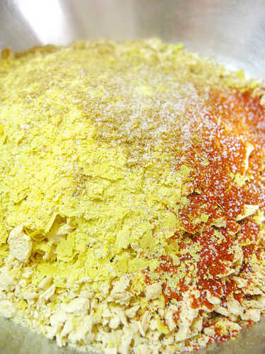 Yo uso levadura nutricional, así como otras especias para infundir algún sabor a la tvp. Levadura nutricional, un elemento básico para cualquier despensa vegano, viene muy bien para hacer un montón de platos como vegano mac y queso. Si no tienes levadura nutricional, se puede utilizar sal y la levadura nutricional también proporciona un agradable sabor a nuez.