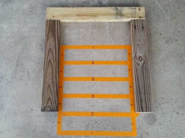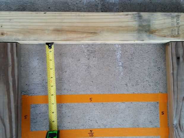 Lugar dos 22" 2x4s en los extremos verticales de la cuadrícula como se muestra en la imagen y el 24" 2 x 4 en el extremo horizontal como se muestra. Debe haber un espacio de 6" entre el extremo de la rejilla y la horizontal 2 x 4. Vea la foto. Se recomienda para garantizar tres 2x4s todos juntos en el presente acuerdo para impedir movimiento durante el juego.