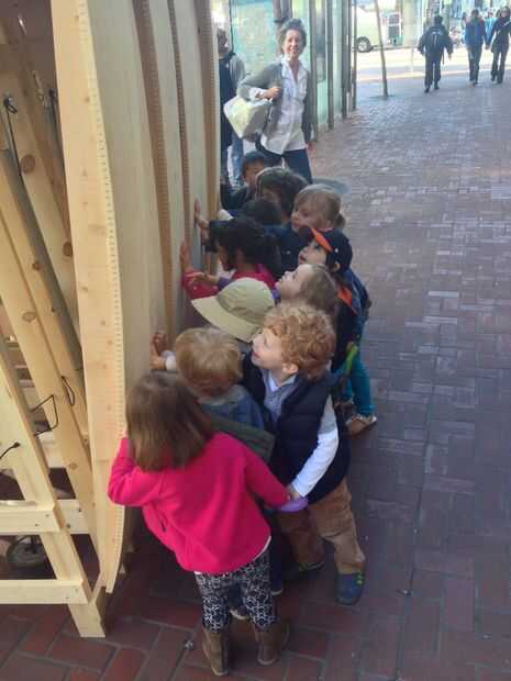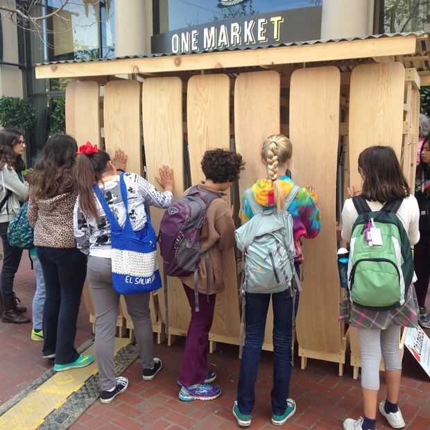 SF de timbre está construido para responder al toque y retroalimentar a través del sonido y su residual movimiento. Una pulsación simple en un gran panel de madera pone en movimiento una serie de sonidos, exploraciones de la conectividad y sonrisas. Las respuestas de la multitud fueron abrumadoramente positivas. Por estar presente con el instrumento para la duración del festival que vimos de primera mano los efectos del sistema. Sorprendente, aunque espera un poco, resultado de la experiencia de calle con timbre SF fue el agrupamiento de los participantes. Más personas tenían más probabilidades de detener e intervenir si hay una persona ya allí. Las multitudes reunido en bandadas y llegaron y dispersión en corrientes constantes. El movimiento de la multitud del festival alrededor de la exposición fue muy fluido. Se convirtió en un espacio temporal para la gente que se conecta, no sólo para el lugar físico, sino también a la idea de que el lugar podría ser más interesante y que las comunidades pueden formar y fortalecer todo el arte y la música.